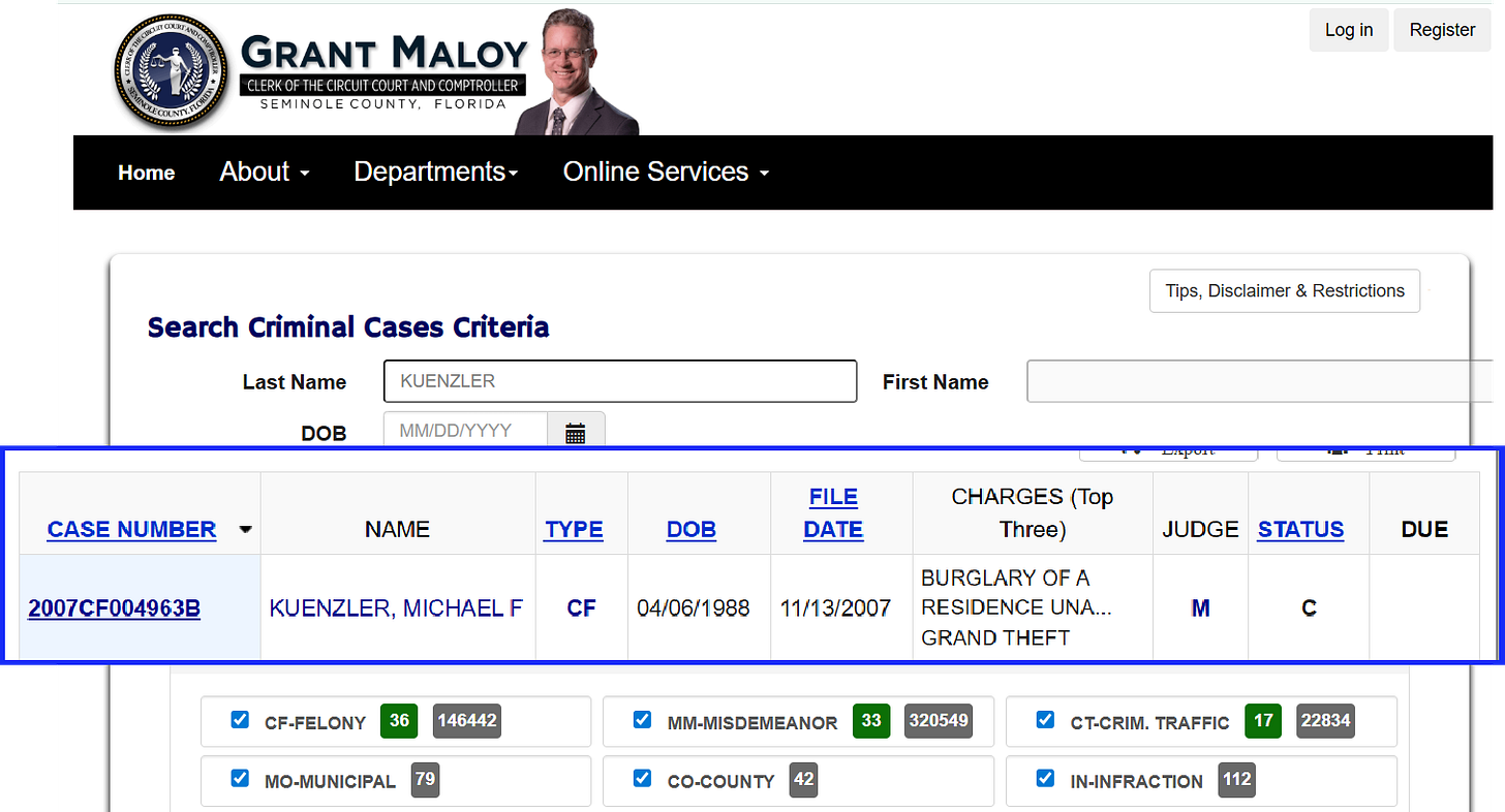 OVERVIEW AND METHODOLOGY: How We Found Michael Kuenzler’s Florida Criminal History.